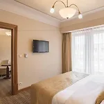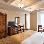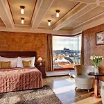Lyxigt hotell med utmärkta restaurang och utsökt mat. Stort rum med exceptionell utsikt över slottet. Ett brett urval av bekvämligheter: mysiga fåtöljer, fönster från golv till tak och ljudisolerade fönster. Duktig personal och underbar frukost. Underbart och fantastiskt läge på gångavstånd från Cafe Slavia.